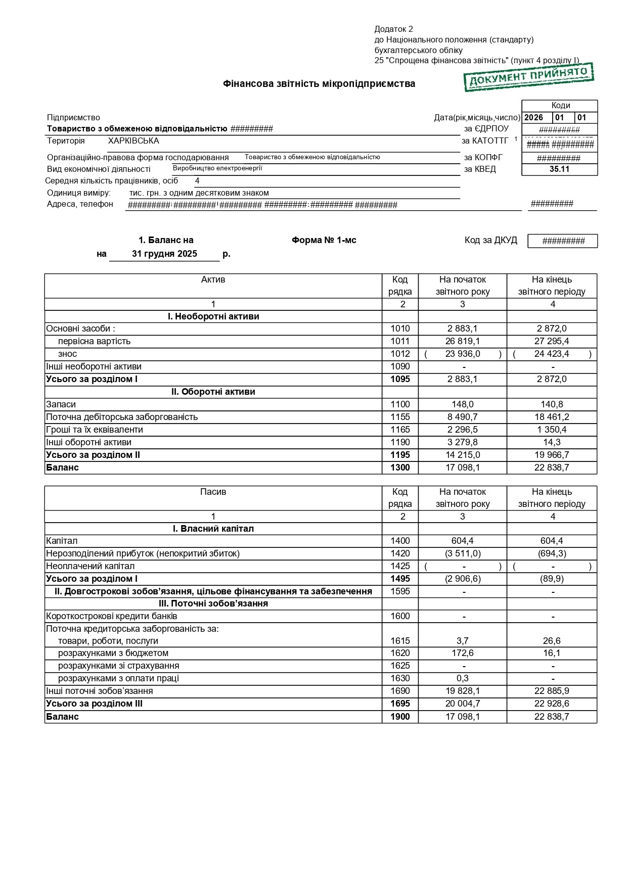 Фінансовий звіт ТОВ "######" за 2025 рік